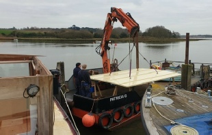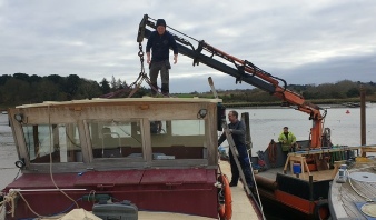 Woodbridge boatyard made a new wheelhouse roof for us in 2021 and fitted it one cold December morning. It was to be insulated, draft proof and strong enough for solar panels. The old roof was 6 panels, easily removed for going under bridges and we are doing that in the UK. It transformed the wheelhouse into a useable room, even at Christmas.