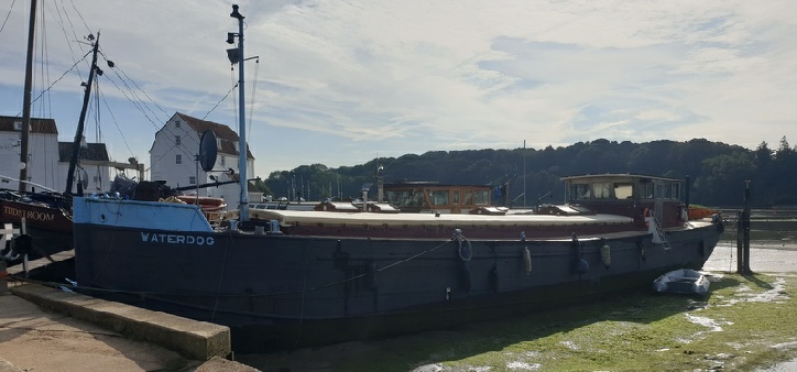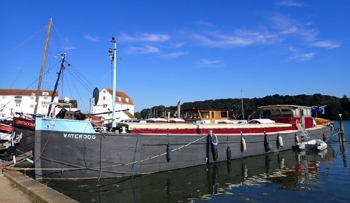 Waterdog is a 27m Humber barge on a fully residential mooring in Woodbridge, Suffolk.