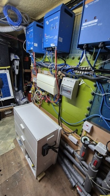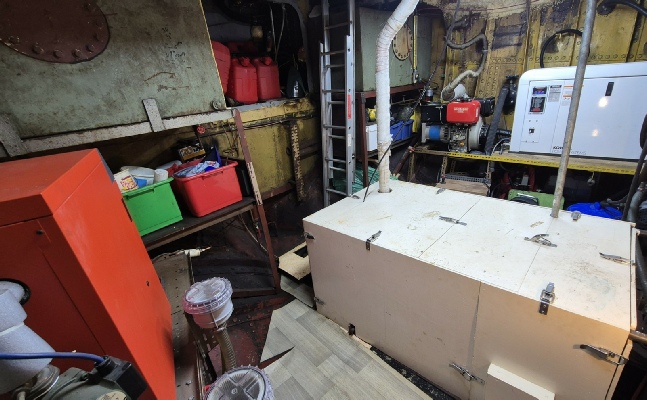 Engine room with generators, fuel tanks and central heating boiler