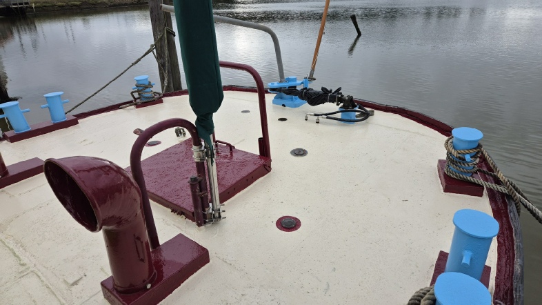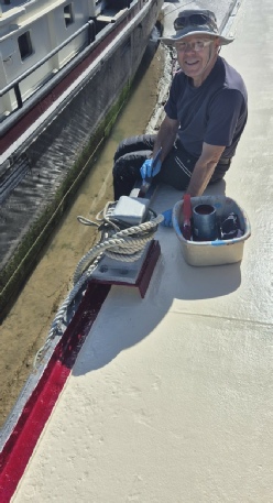 Waterdog has been our home since 1996, starting in Goole, East Yorkshire, with a dream of refurbishing her and cruising the French canals. We were towed to our first dry docking in Hull 2002, where we got her old engine (Gardner 4LW 48HP) going and cruised her on the Humber and the Aire & Calder canal in Yorkshire. In the next dry docking in Hull 2008, we replaced the old engine with a new Ford Mermaid Mariner (135HP), and had an electric bow thruster fitted. This would be much more powerful and reliable to cross the North Sea and travel the waterways of France and Belgium, later that year.