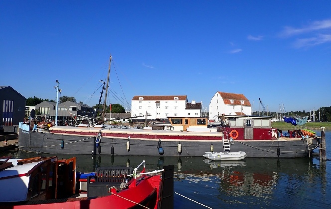 In September 2016 we crossed the North Sea in Waterdog for a second time from Nieuwpoort, Belgium to Woodbridge in Suffolk. She was moored bow on to the Deben river front with only a 5 minute walk to the town centre. In 2017 we voyaged along the coast to Essex for a month in dry dock and then back via Harwich.