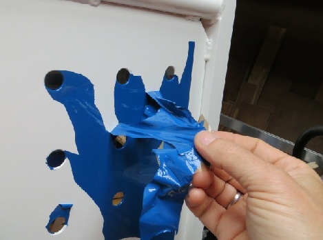 All went well and it had a beautiful smooth blue finish, then I tried to pull off the masking tape that marked the edge of the blue square. I couldn’t peel off the tape without pulling swathes of blue paint off at the same time. Aaghhh, I set to to peel the whole lot off using packing tape to help get a purchase. It took 2 days to put on and 4 hours to take off to pristine white again, all for a moment of laziness. Lesson learned -