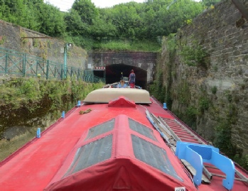The tunnel under the town of Revin was much less worrying than the Ham tunnel, it had a reassuring wide top so that the wheelhouse seemed safe. It was still worth trying to keep Waterdog to the left and rub down the walkway there.