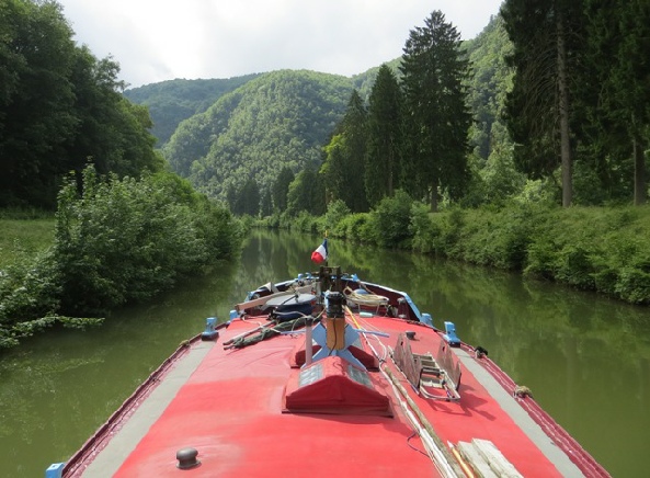 WOW, this scenery was just stunning! This was in an approach to a lock, there is sometimes a stretch of a kilometre or so of canal alongside the river, separated from the river by a strip of land (on the right here). It was so green and had such height and majesty, wow.
