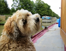 This is Tilly looking for reassurance as a big noisy barge approaches our mooring.