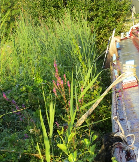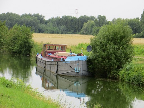 Going north from Rethel there were plenty of moorings but here was one close to Seuil lock with a small town about 2km away. We had to push into a tree and cut some bracken away with secateurs to find a pair of bollards but after that we were snug against a flowery bank with a small concrete plinth where we could step off.