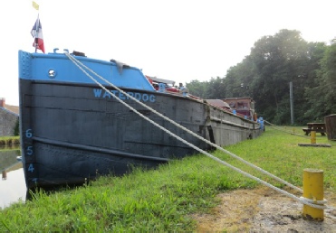 On the first days cruise Pete spotted a frog struggling in a lock beside the boat. He quickly grabbed a deck brush and scooped the frog out to save it being crushed by the 100 ton Waterdog. He lowered it into the water after the lock and off it went.