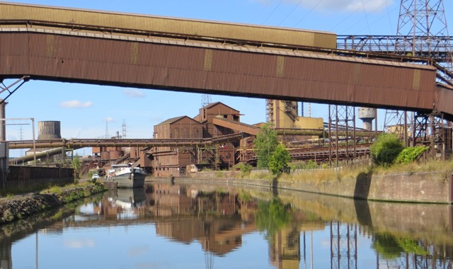 Charleroi's industry has its own beauty even if not all of it is in use still. There is still a lot of industry close to the canals still with recycling centres, smelting and bulk cargo movement. We are always impressed with the miles of rusty but active warehouses and conveyor belts.