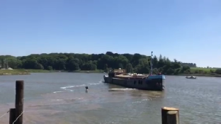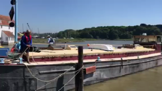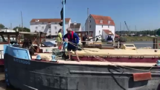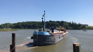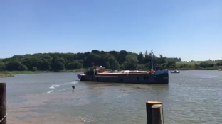 It was great to be mobile with Waterdog again after 7 months of being moored, we couldn’t help tooting the horn, waving and grinning as we steamed away from Woodbridge. We had put up the ball, diamond, ball shapes that indicate that we had difficulty manoeuvring because the fairways between the moored small boats was very narrow in Woodbridge, Walderingfield, Ramsholt and Felixstowe ferry. This was compounded by a cross wind which blew the moored boats into the narrow fairway. We planned to stick to the centre and blow the horn and let the smaller boats keep out of the way, it was May bank holiday weekend and the river was teeming with pleasure boats. All went well though and we got as far as the ‘Rocks’ to anchor before the ebb really kicked in.