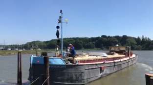 The trip seemed to be a long time coming with lots of things to get arranged but finally we could let go the ropes and head to sea. The plan was to drive aft but have a bow spring ready to go ahead on, so that we could line the stern up again going slightly down river against the flood tide. As it happened (watch the video here), Waterdog went straight back and Pete was quick enough to flick the rope off the pile as we went. The flood tide started taking the stern around to stbd and a few pushes with the bow thruster helped the bow stay up to port.