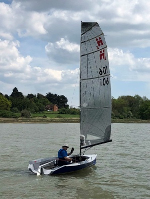 Lawrence in his Hadron H2 going down river for spring racing at the DYC