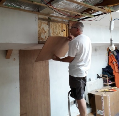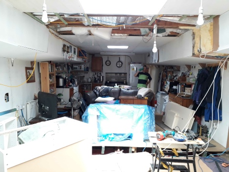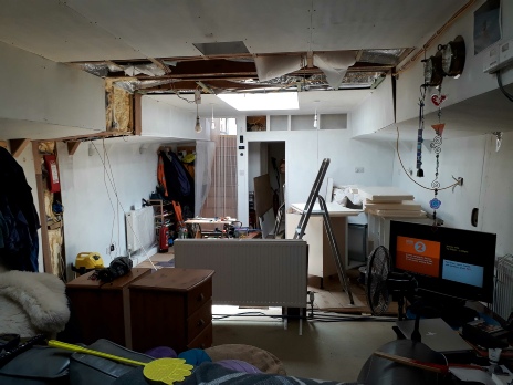 WOW, it really opens up the interior of Waterdog so now we have a kitchen, lounge, diner that is 9m x 4.5m! In the middle is the radiator bracketed to the floor as it had been hung on the wall that was taken away.