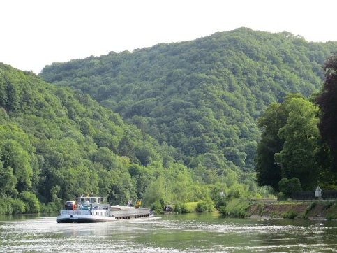 This is looking from our mooring towards Waulsort lock and also shows a pretty nice way of earning a living.