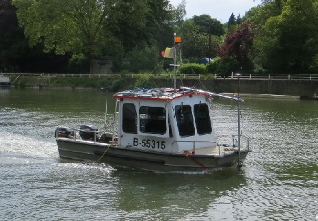 We stopped at Waulsort, just before the border with France and saw this survey boat going up and down the stretch of river. We think it has a multibeam echosounder mounted over the bow -