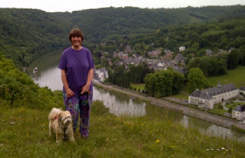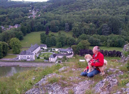 We took a long walk in the hills/forests at Waulsort and came out to a view point where we could look down on Waterdog from high above. Waterdog is just off Lorna's right elbow. Little did we know that we had another 2km to walk away from the boat before we could find a path back down to the river to start heading back.