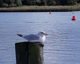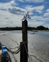 In the summer a first year Herring Gull claimed our starboard aft mooring post and we had a local artist ‘Spag’ put one of his Cormorants on our port aft mooring post.